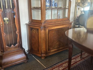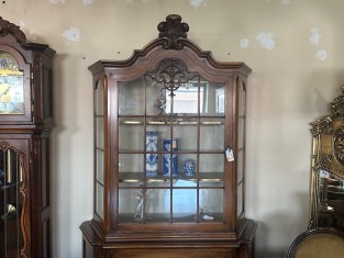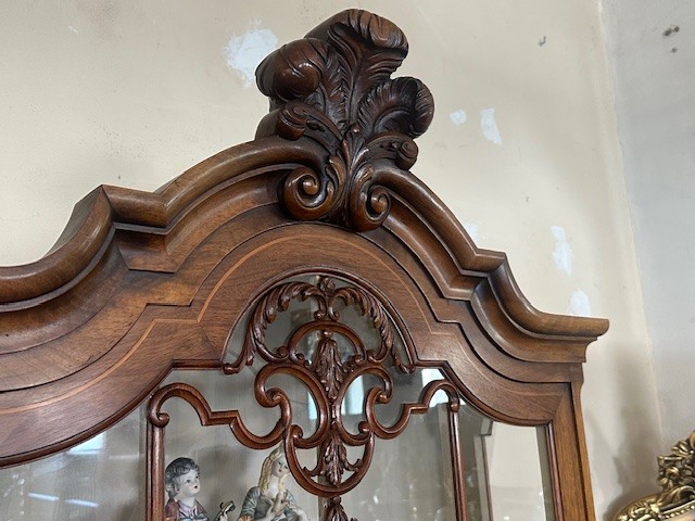 Horní díl zakončen zaoblenou římsou s vyřezávanou rozetou