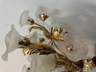 Stinidla jsou zhotovena z mléčného skla stylizována do vzhledu kvítků