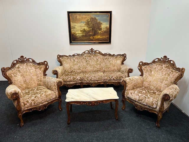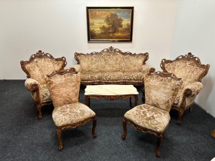 Velmi honosný set je čalouněn moherém s barokním dezénem
