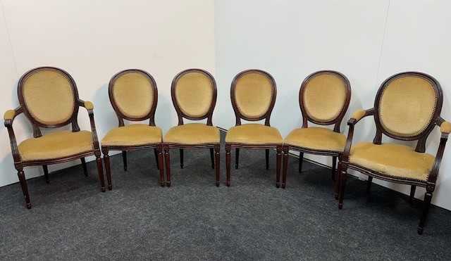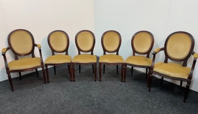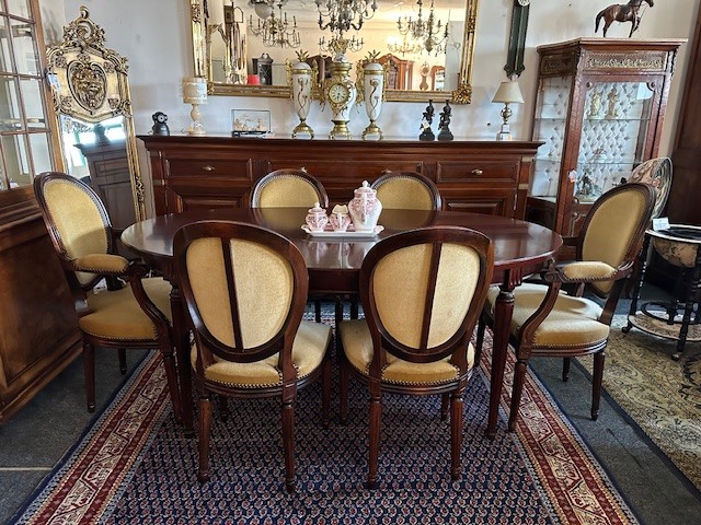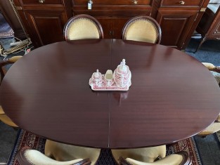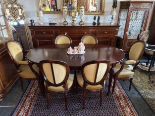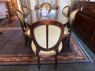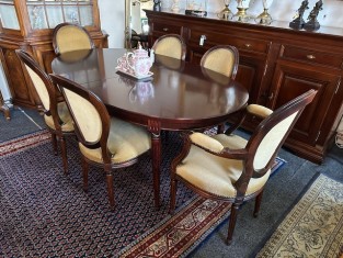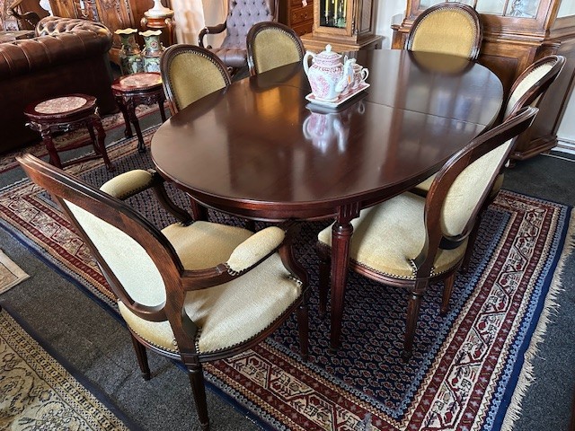 8851: Stylový oválný rozkládací jídelní stůl a 6 židlí Chesterfield