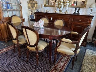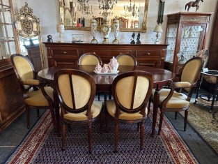 Stylový jídelní stůl , 4 židle a 2 křesla Chesterfield