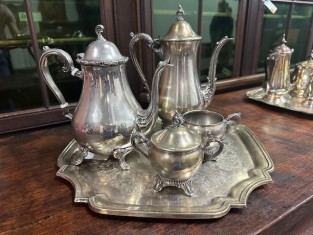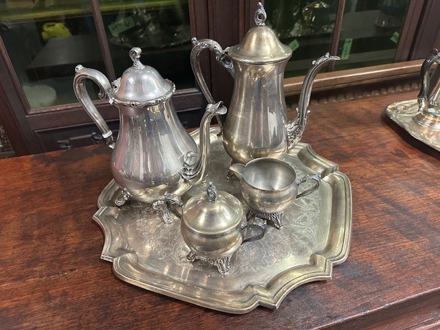 Sada je pětičlenná - podnos, 2 konvice, mléčenka a cukřenka