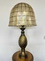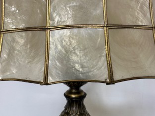 8900: Unikátní starožitná velká lampa s perleťovou vitráží Capiz shell