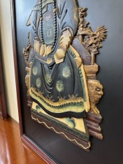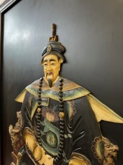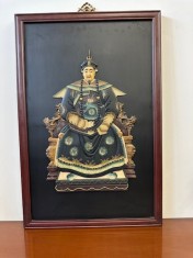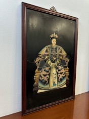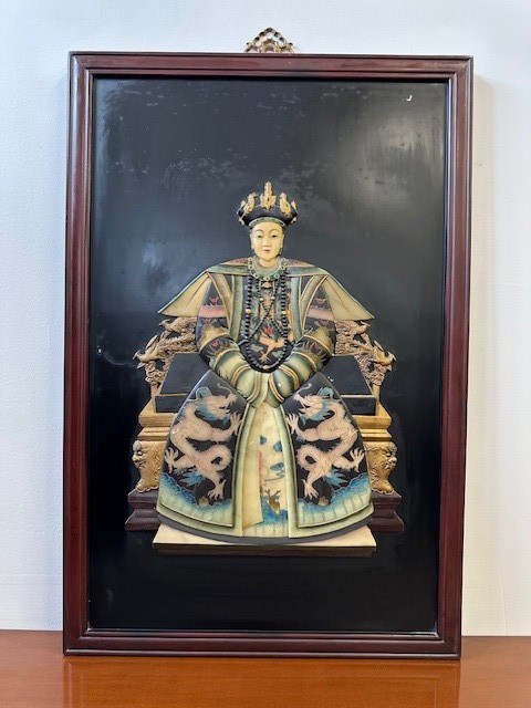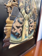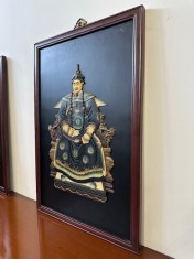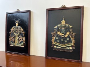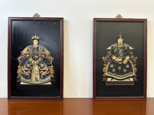 Obrazy znázorňují císaře a císařovnu dynastie Qing, postavy v ceremoniálním oděvu jsou vykládané na černém lakovém dřevěném podkladu