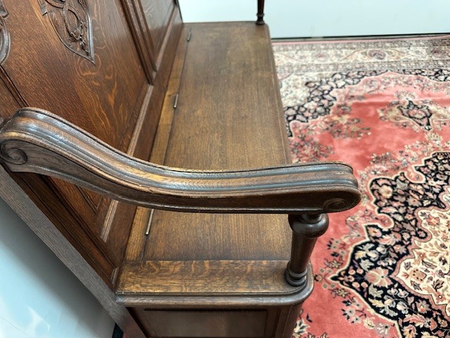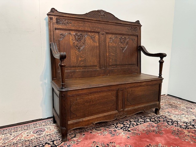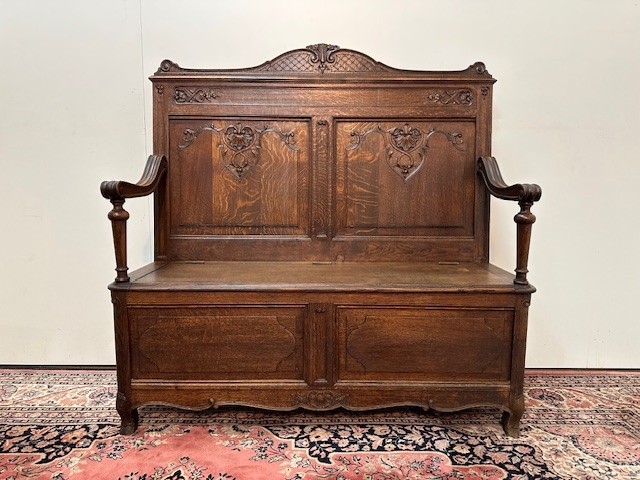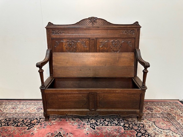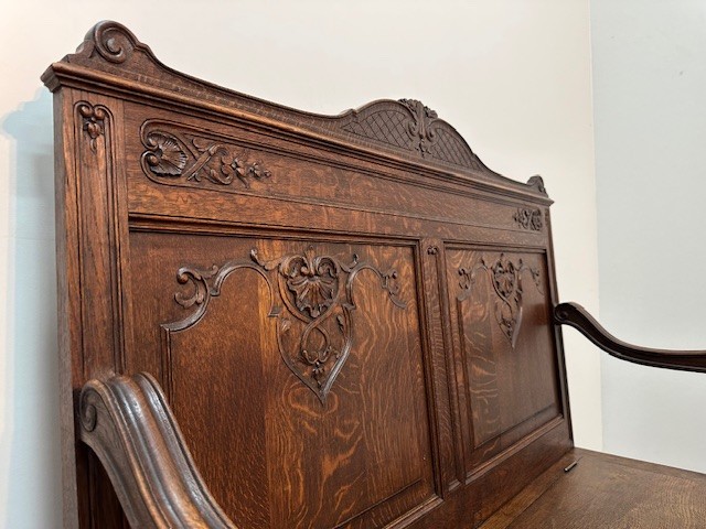 Vyšší zádová opěra je zdobena krásnou detailní řezbou
