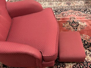 8934: Krásné čalouněné křeslo s podnožkou , skladem ve 2 kusech