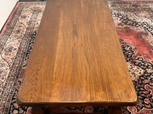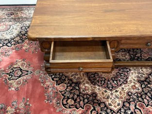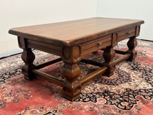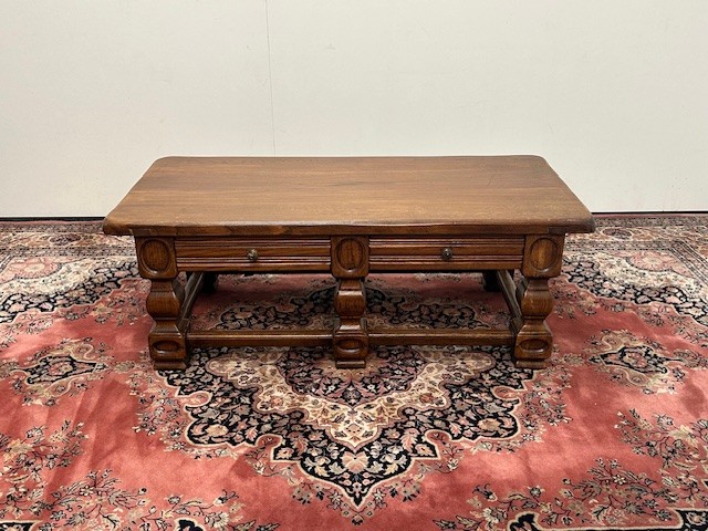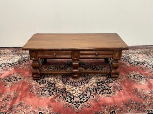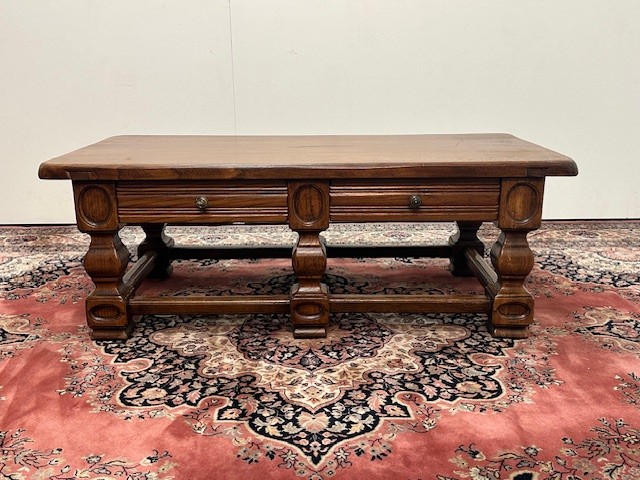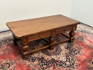 Stolek je podélného tvaru se dvěmi zásuvkami