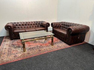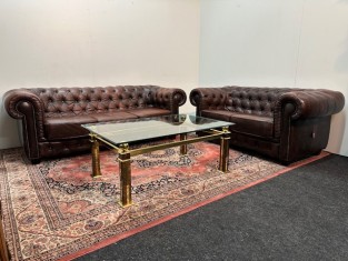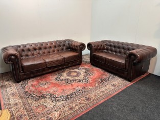 8992: Sedací souprava Chesterfield Anglie, kožená 3+2
