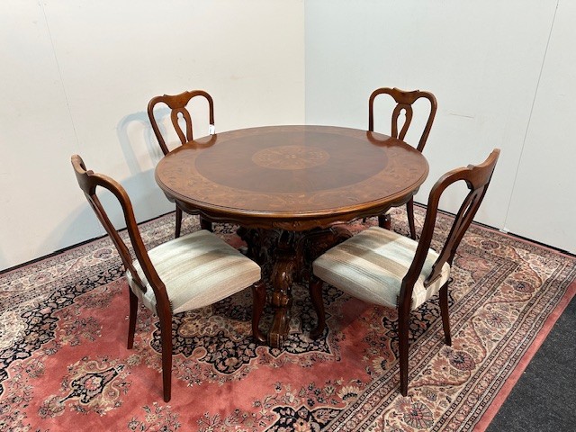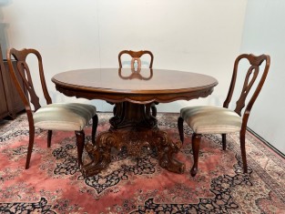 9057: Neobarokní jídelní kulatý stůl a 4 židle