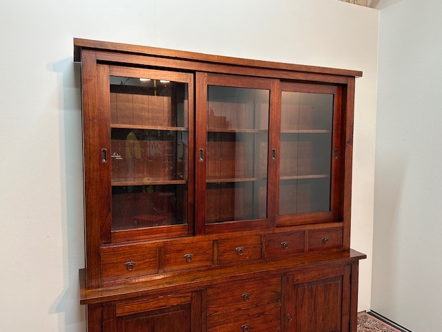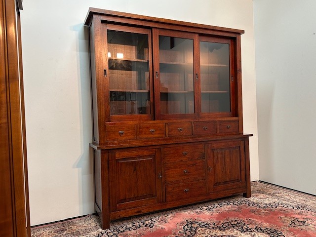 Knihovna má posuvné dvéře , v horním díle ze 3 částí