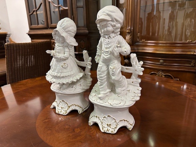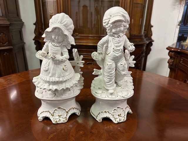 Porcelánová dekorace znázorňující chlapečka a holčičku