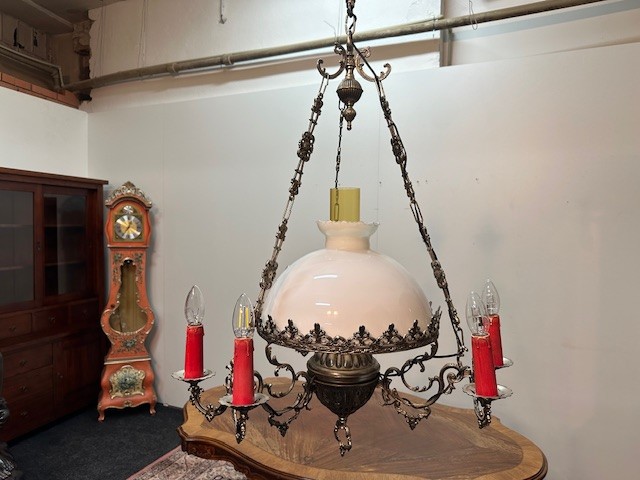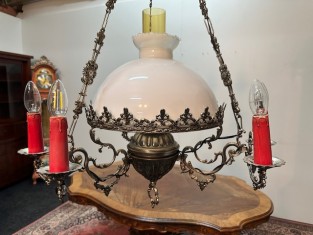 Dobový lustr se skleněným stínidlem