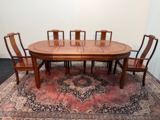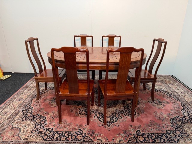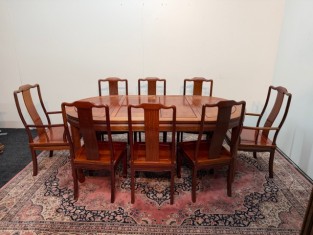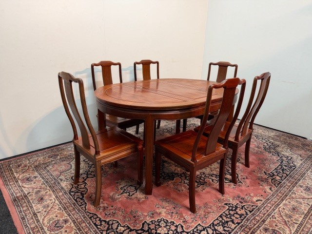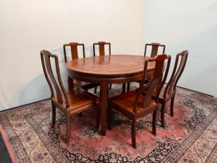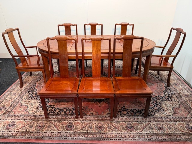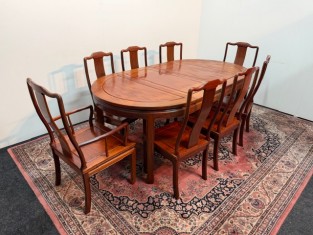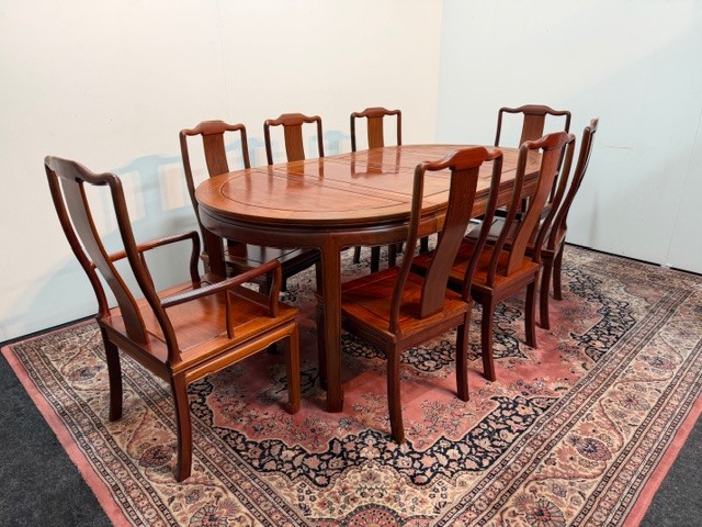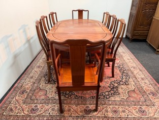 9101: Luxusní rozkládací jídelní stůl , 2 křesla a 6 židlí z růžového dřeva rosewood