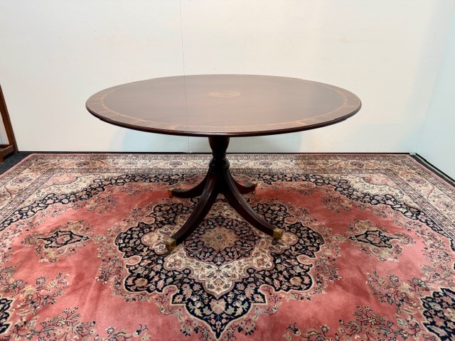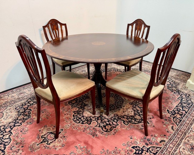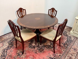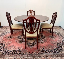 9112: Anglický starožitný jídelní stůl a 4 židle mahagon