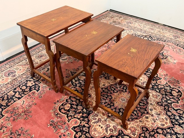 9120: Hnízdové stolky z exotického dřeva s intarzií