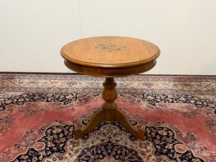 Elegantní stolek kulatého tvaru je zhotoven z exotického masívu