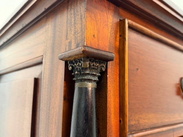 V rozích komody jsou černé sloupky stylizovány do antického vzhledu