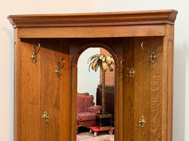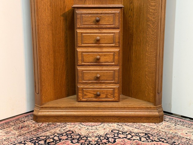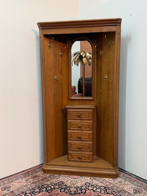 9140: Dubová rohová odkládací stěna / věšák s komodou