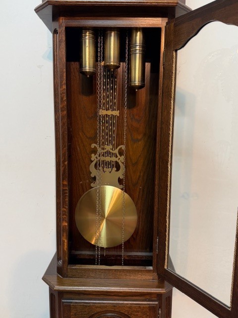 9144: Podlahové hodiny se třemi závažími a harfovým kyvadlem
