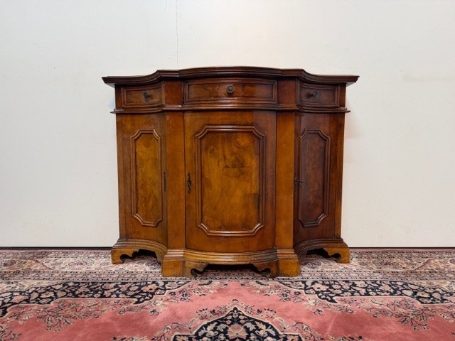 Dvírka jsou zdobena dekorativními kazetami s kořenovicí Komoda má 3 praktické zásuvky