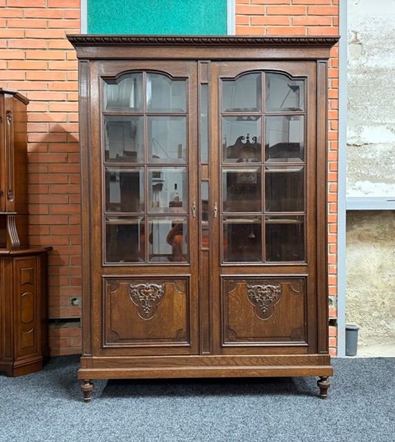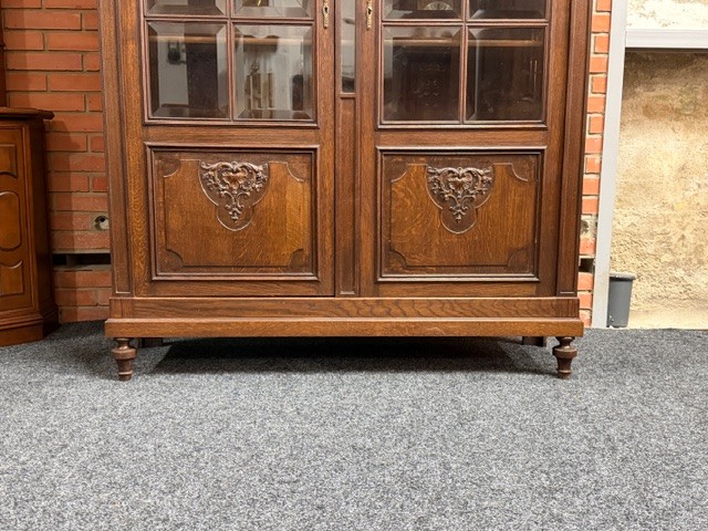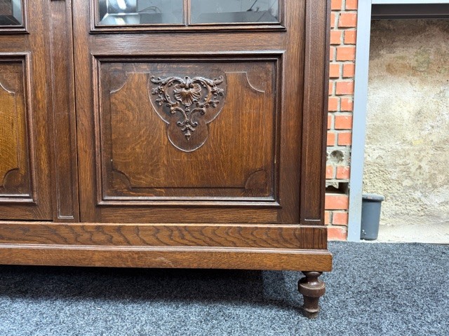 Řezbovaná knihovna je zhotovena z dubového masívu