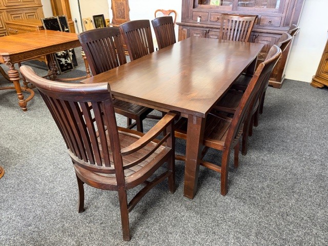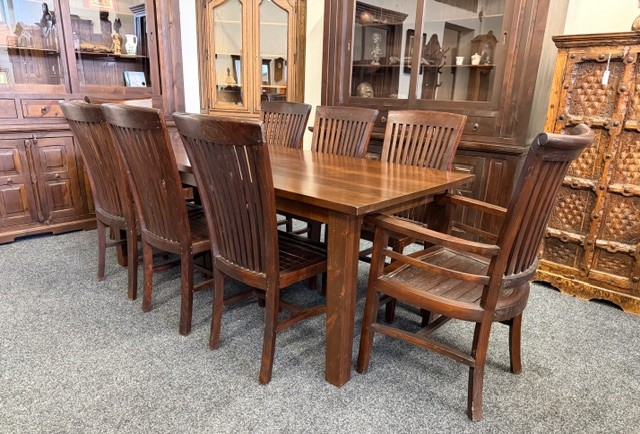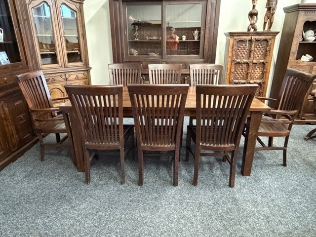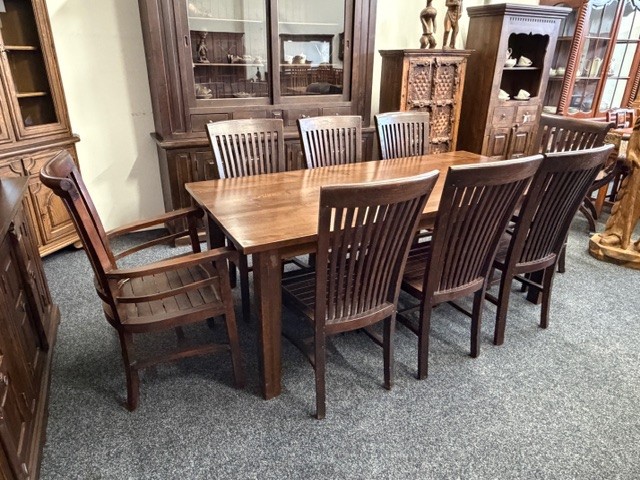 9186: Stylový koloniální jídelní stůl 6 židlí a 2 křesla