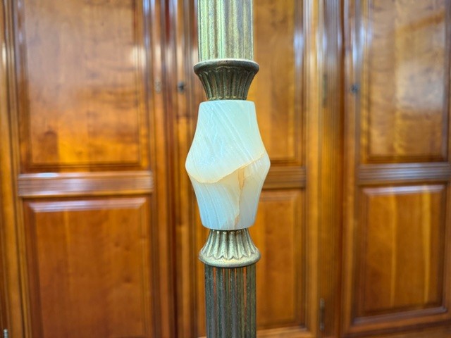 Elegantní noha zhotovena ze zlacené mosazi s onyxovými zdobnými prvky