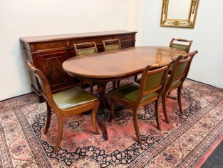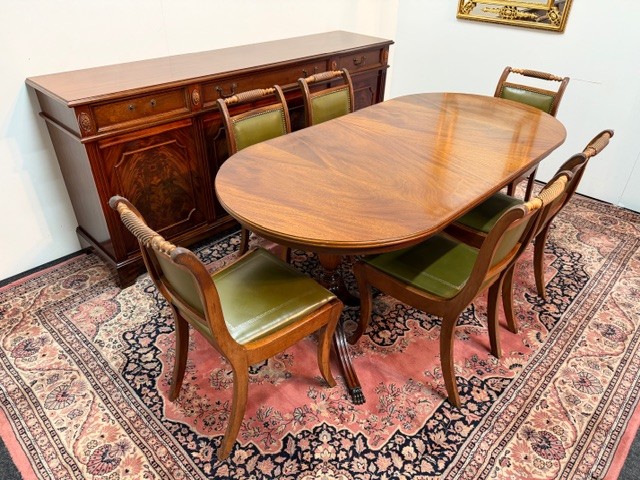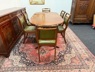9197: Oválný jídelní stůl Chesterfield a ž kožených židlí
