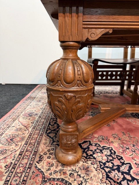 Starožitný stůl pochází z Belgie a je zhotoven v mechelském neorenesančním stylu