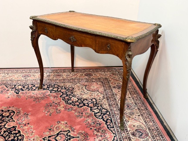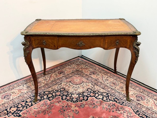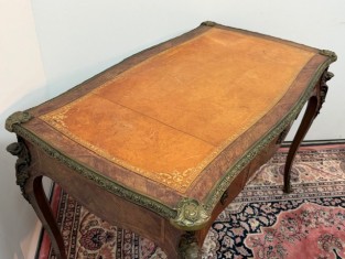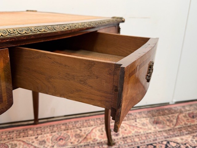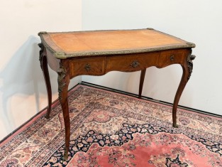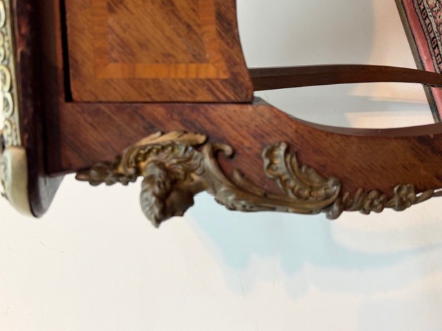 Menší psací stolek je zhotoven z masívu , dýhován palisandorovou dýhou