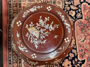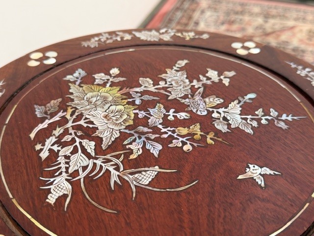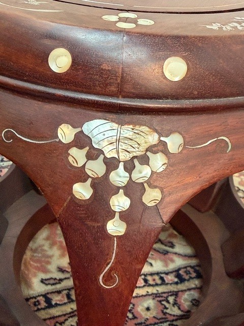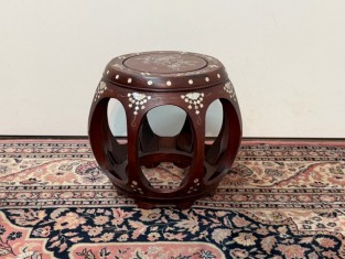 9214: Starožitný čínský bubnový stolek s perletí DRUM STOOL
