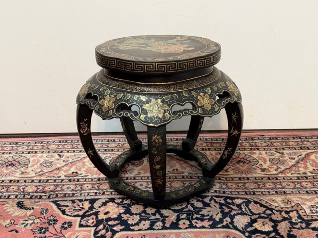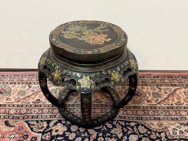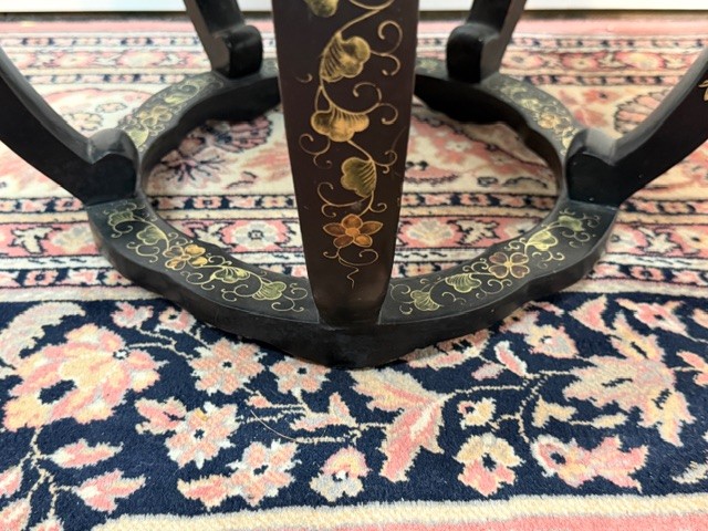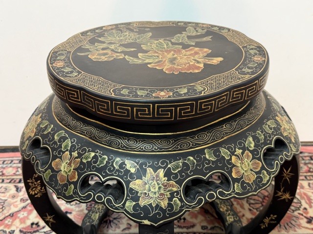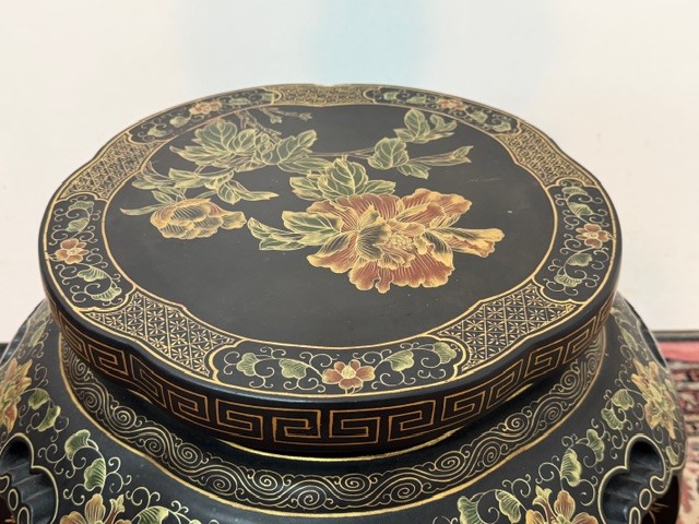 Povrch je tradičně v černém laku s ruční malbou s florálním motivem