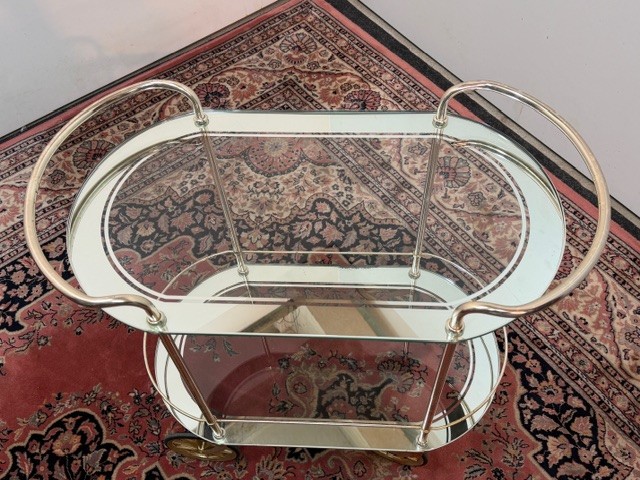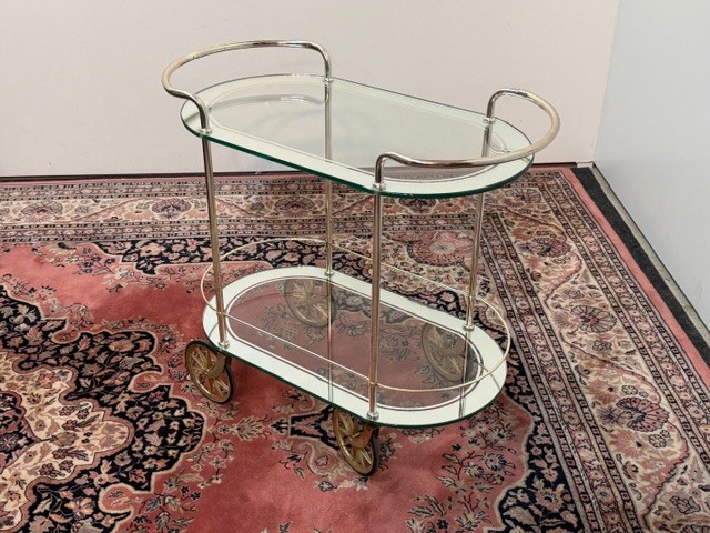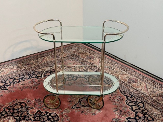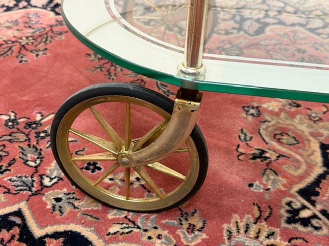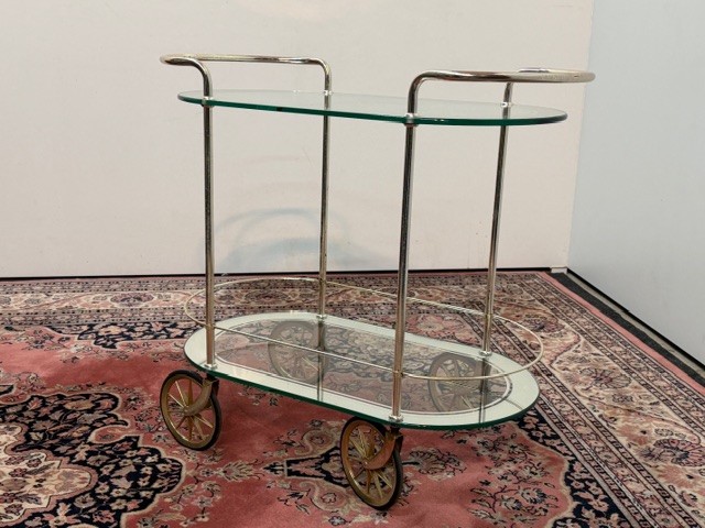 9220: Servírovací stolek skleněný na kolečkách ve stylu ART DEKO