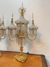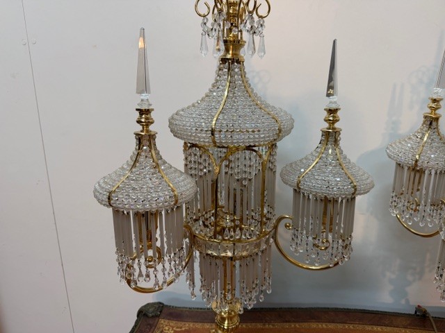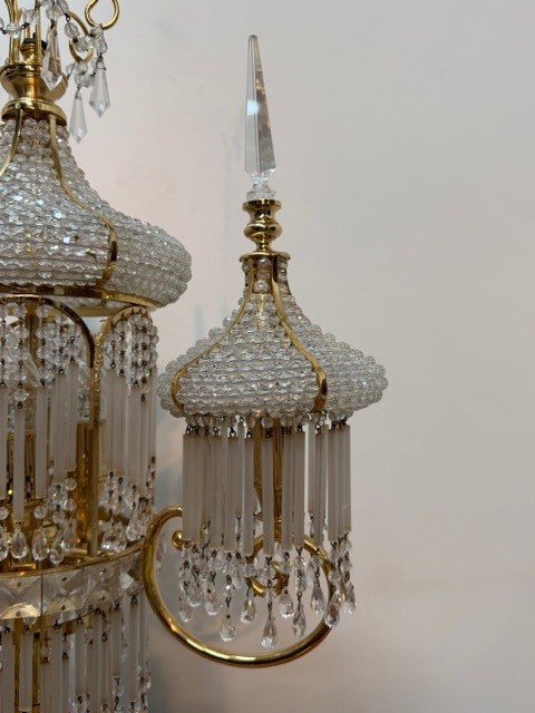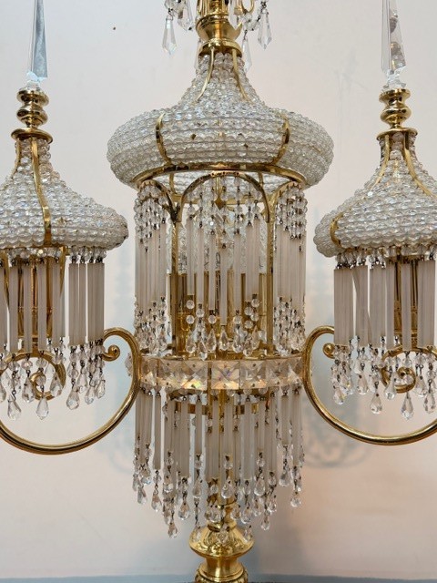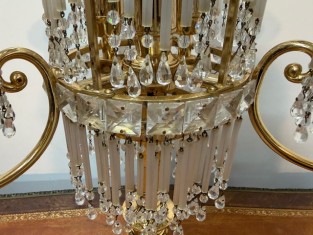 Zhotoveno ze zlacené mosazi s křišťálovými ověsy
