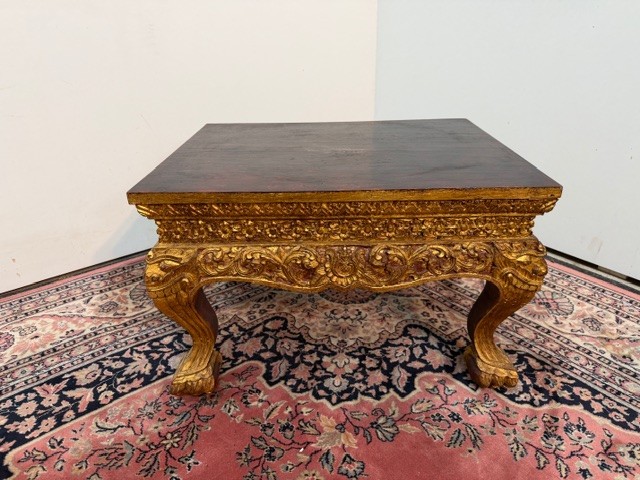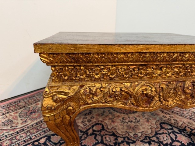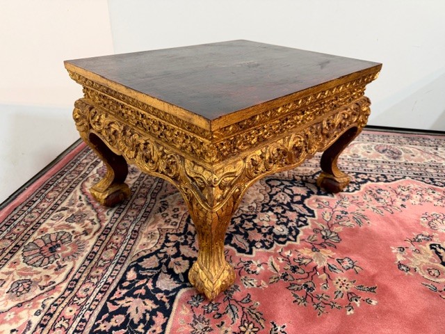 Nízký stolek ze zlaceného vyřezávaného dřeva v thajském stylu - rattanakosin