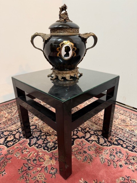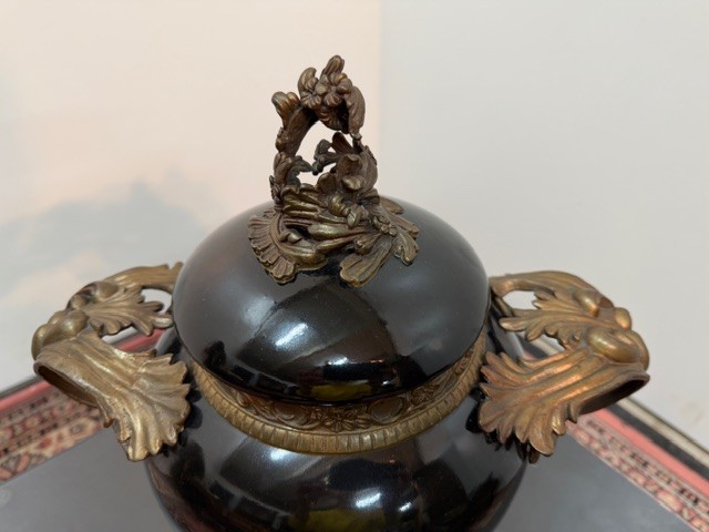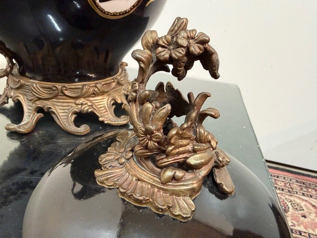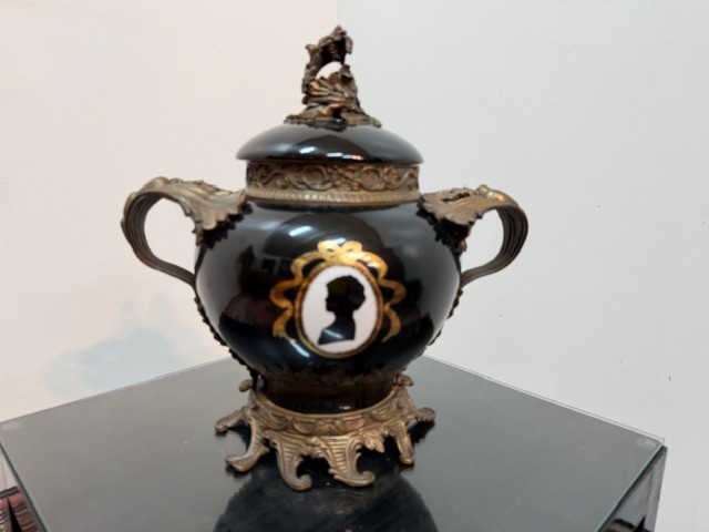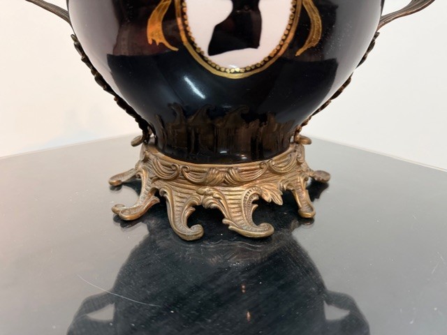 Porcelán v bílo černém provedení , zdobné bronzové prvky