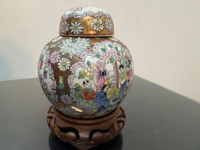 9249: Menší čínská zázvorová dóza na dřevěném podstavci