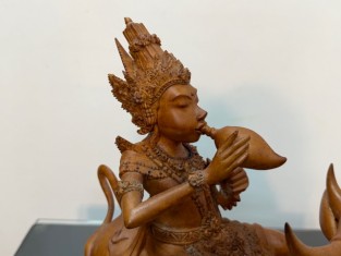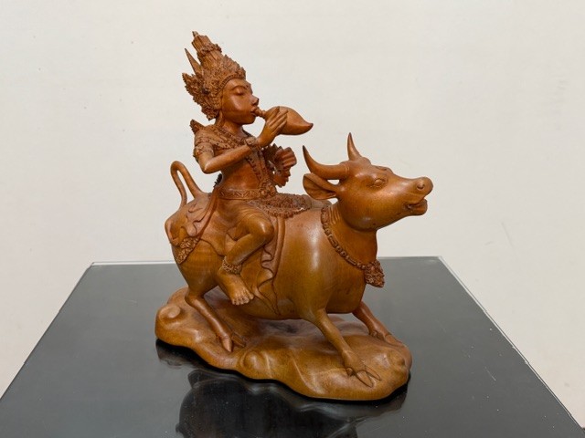 Dřevěná socha zhotovena z exotického dřeva suar neboli rain tree wood