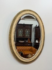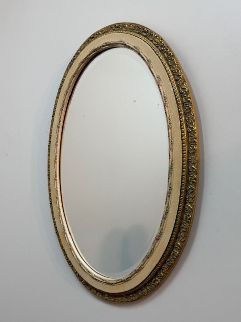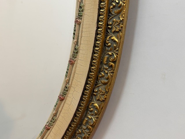 9257: Ozdobné oválné zrcadlo v bílo zlatém rámu