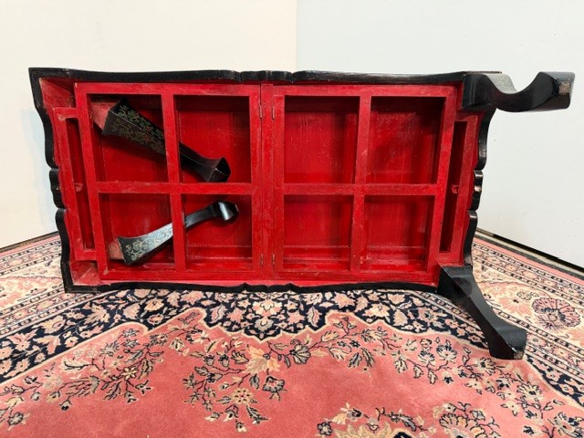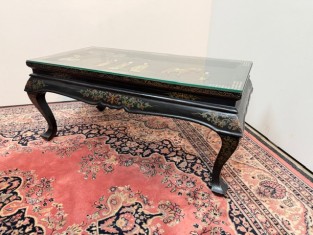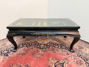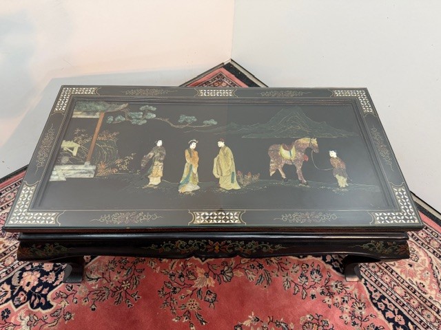 9261: čínský lakovaný konferenční stolek s kamennou intarzií a perletí