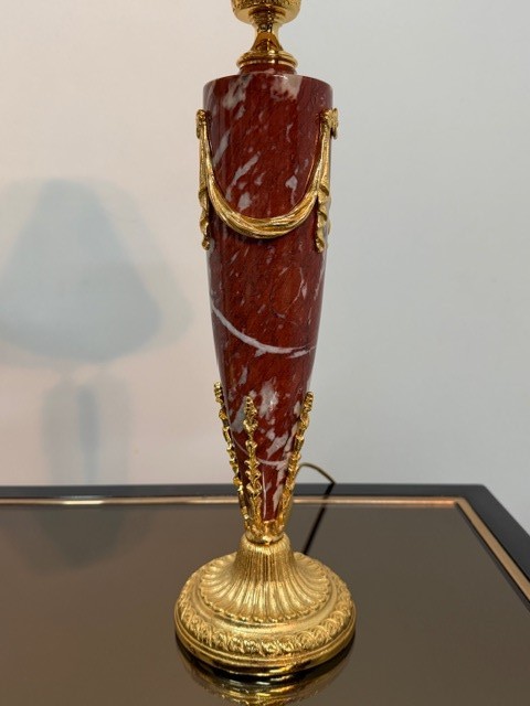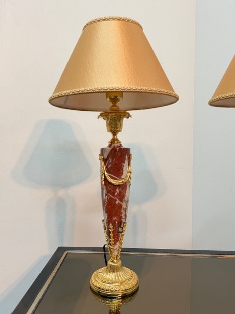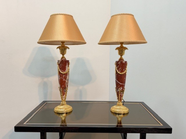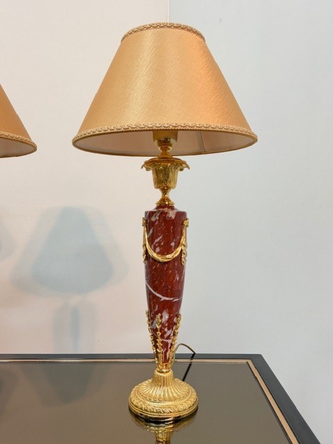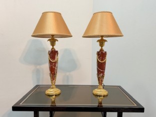Ozdobné lampy mají stojan z mramoru se zlacenými ozdobnámi mosaznými prvky