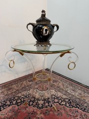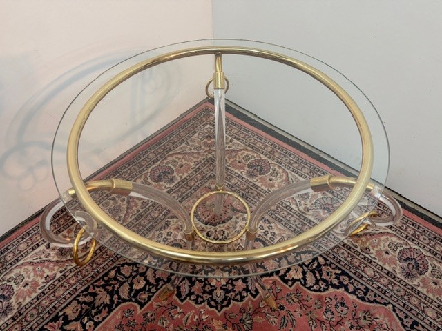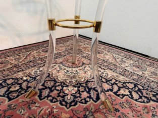 Kulatý stolek ve stylu Directoire z čirého lucitu-akrylová pryskyřice a zlacené mosazi stojí na 3 klenutých nohách