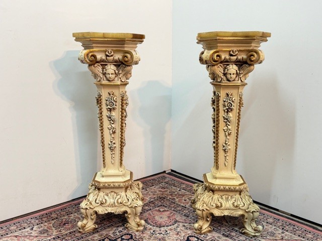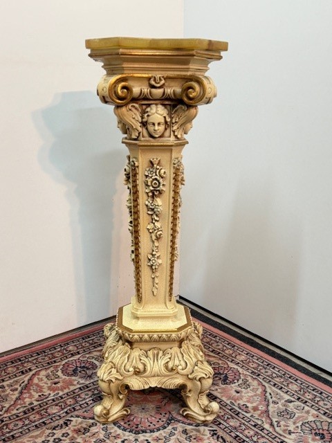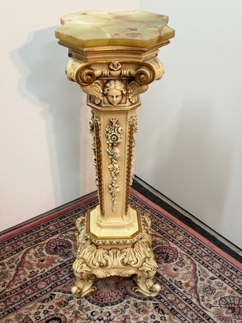 9283: Starožitný barokní sloup s onyxovou deskou , sladem ve 2 kusech
