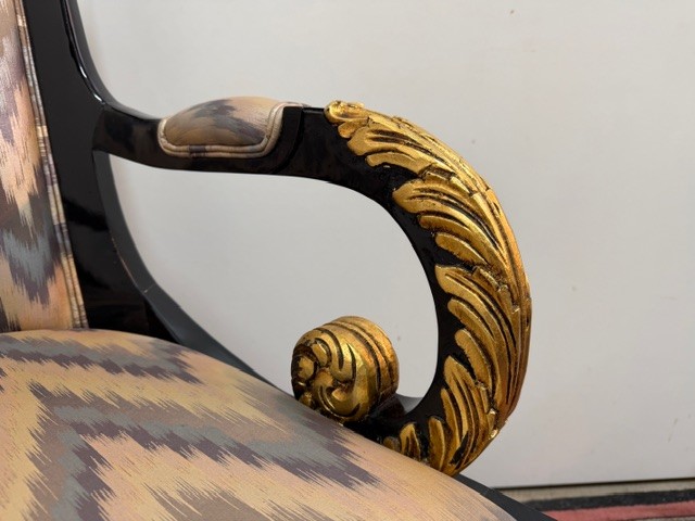 9288: Křeslo se zlatými akcenty empírovém stylu, skladem 2. kusy