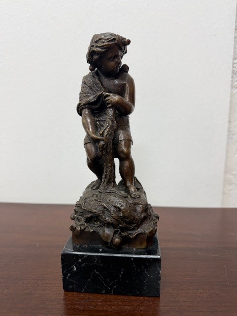 9295: Starožitná bronzová soška na mramorovém soklu