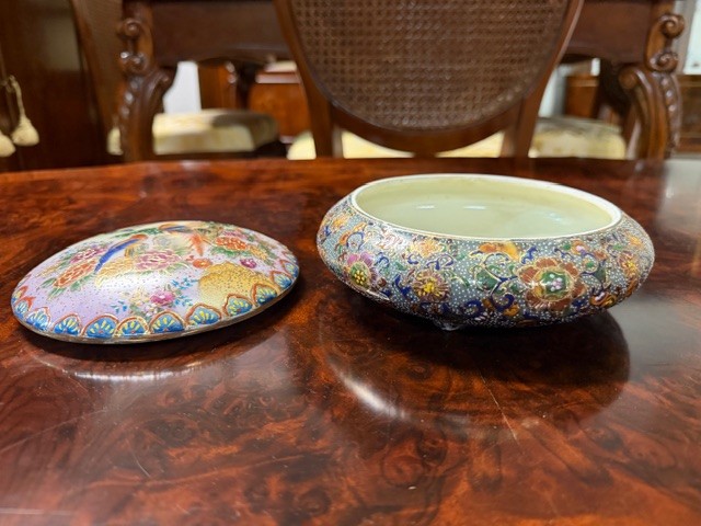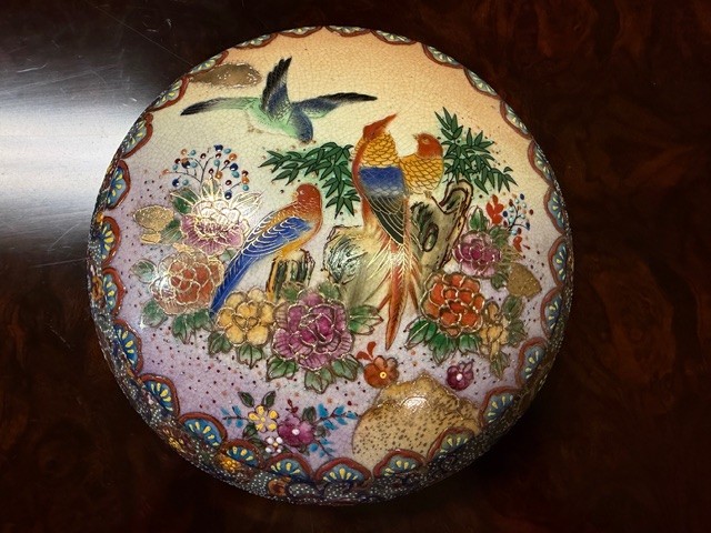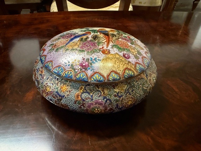 9298: Vintage signovaná japonská doza Royal Satsuma s víkem