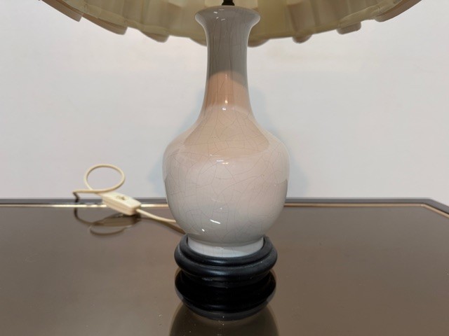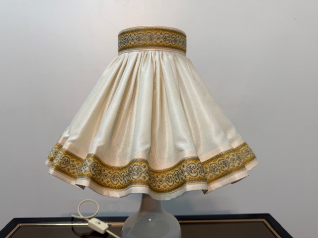 Vintage stolní lampa s charakteristickým skládaným stínidlem označovaným jak " lampová sukně "