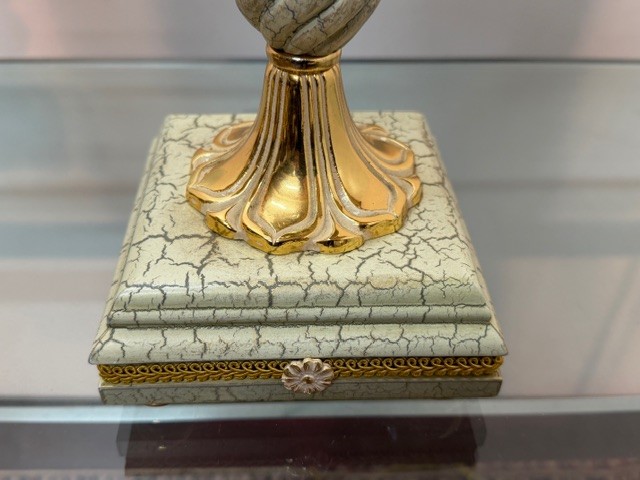 Noha zhotovena z mosazi a kompozitních materiálů s krakelováním